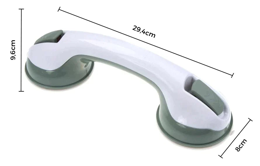 A Barra de Apoio para Banheiro com Borrachas de Fixação que mantém idosos, grávidas, crianças e portadores de necessidades especiais seguros.